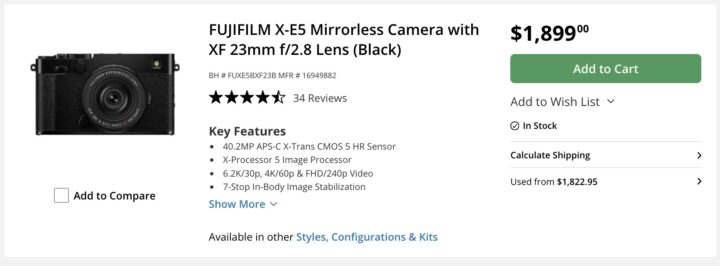 You can now grab the Fujifilm X-E5 with XF23mmF2.8 at BHPhoto here, at Amazon here (sold via Adorama) or directly at Adorama here.