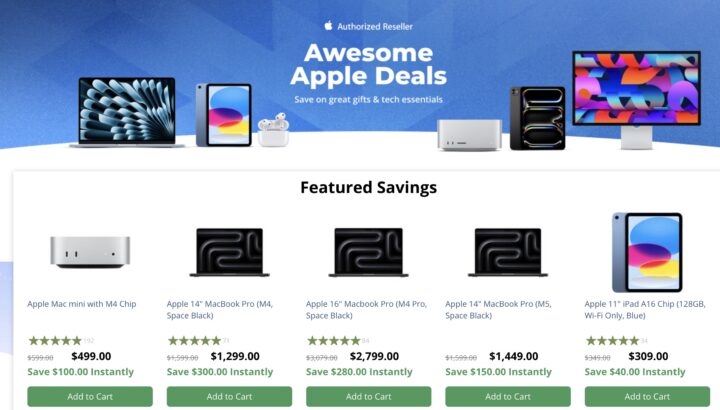 Black Friday deals on Apple products at BHphoto and Amazon. There is also a 30% off on a ton of reconditioned Apple products sold by Amazon Resale (Click here). 20% off on these Apple products, 15% off on these Apple products and 10% off on these Apple products.