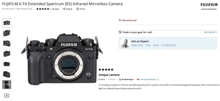Well, now the Fujifilm X-T4 infrared camera has been discontinued at BHphoto.