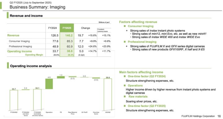The latest Fujifilm financial results are out (Q2/2025 – July to September 2025).