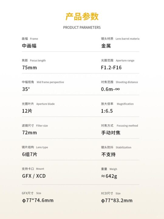 SG-image announced this new fast and manual focusing 75mm f/1.2 medium format lens. There is yet no info about the pricing and availability. But there are specs and images you can check out below.