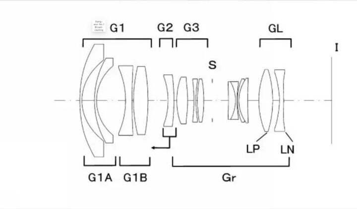The patent describes an optical design for a 24mm f/2 lens that appears to cover a sensor larger than full frame. Based on the technical specifications, the Japanese website Asobinet speculates that this design could be intended for Fujifilm GFX (44×33mm).
