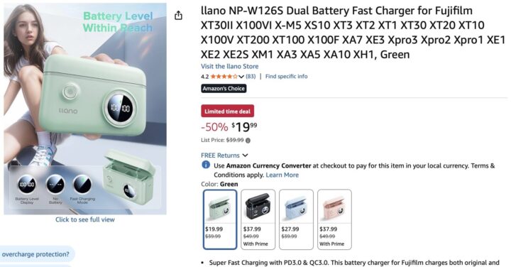 At the time of this post you can save up to 50% on the llano NP-W126S Dual Battery charger at Amazon US.
