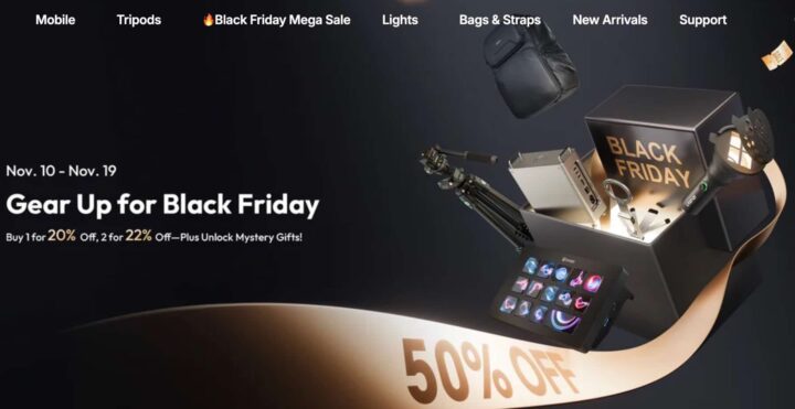 Ulanzi has now launched their Black Friday offer: 20% off on 1 item, 22% off on 2+ items and up to 50% off on select best-selling products.